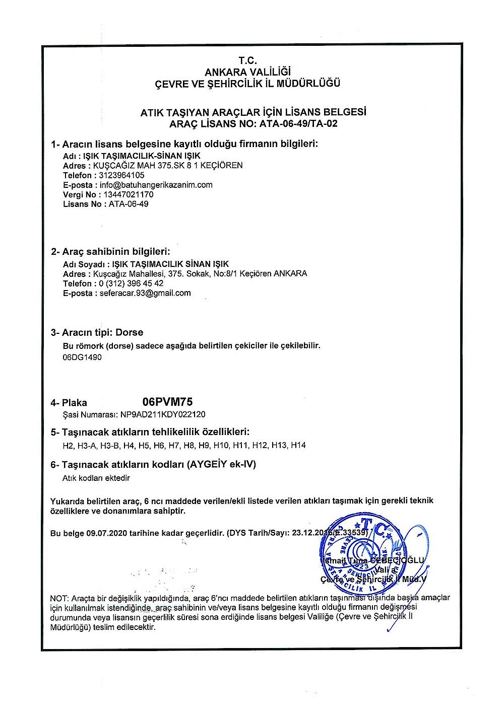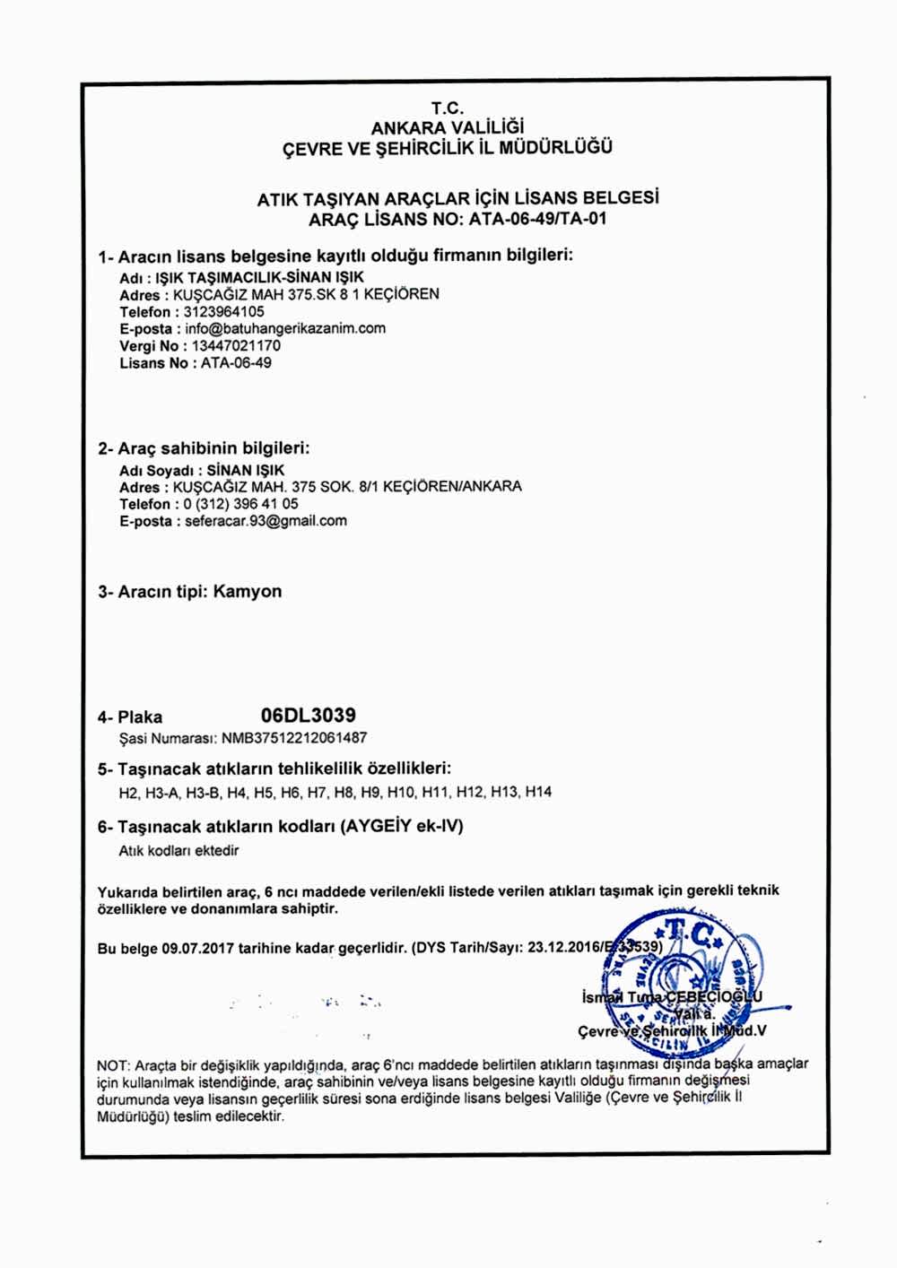 • Tehlikeli Atıkların Kontrolü Yönetmeliği